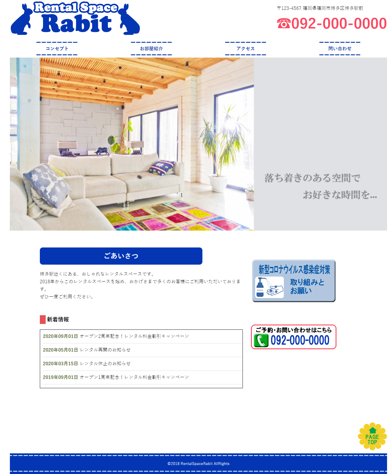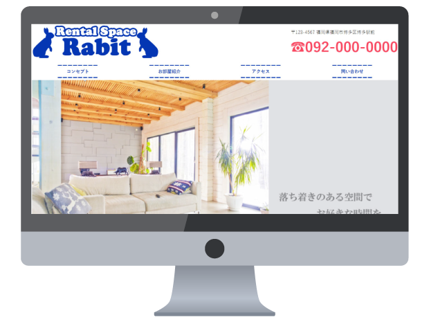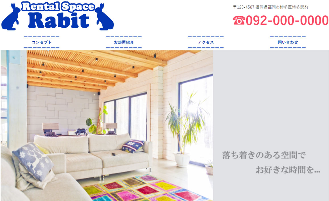 職業訓練の卒業制作として作成。博多駅の近くにある架空のレンタルスペースのホームページ。